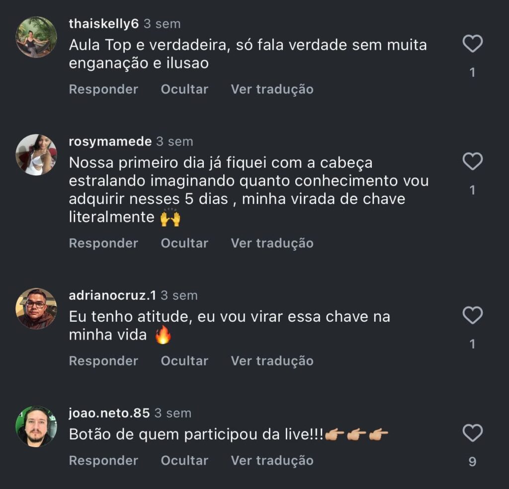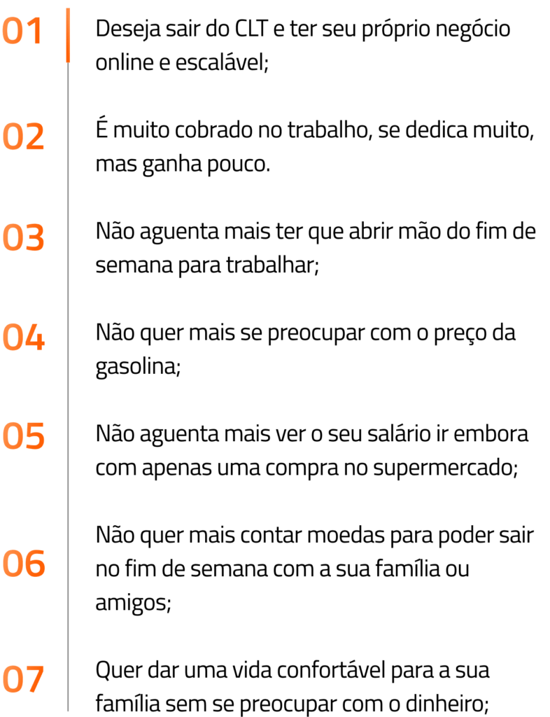 Vou te oferecer 30 dias de garantia incondicional, se dentro desse prazo você perceber que o produto não é para você, pode pedir o dinheiro de volta e eu te devolvo 100% do seu investimento! Eu só posso te oferecer isso, porque eu confio no meu método e sei que foi utilizado por mais de 8.000 pessoas, sempre trazendo resultados. Você não tem risco nenhum, o risco é inteiramente meu!